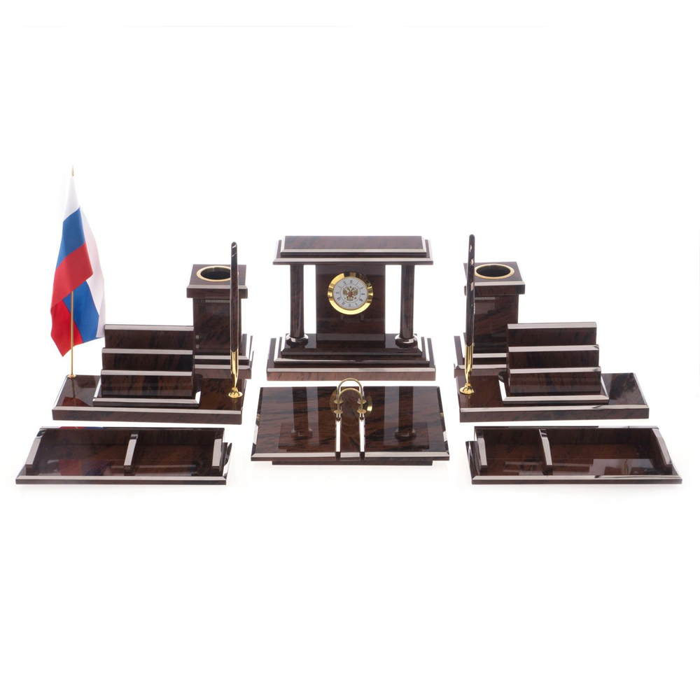 Настольный письменный набор из природного камня обсидиана Team leader Коричневый Бронза в Перми | Loft Concept