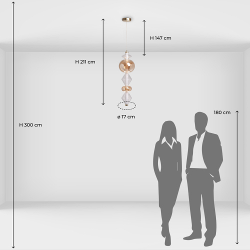 Подвесной светильник с вертикальной композицией из прозрачных и янтарных стеклянных шаров и ромбов Gabriel Scott Luna в Перми